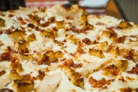 Garlic cream sauce, mozzarella blend, dill pickle, and dill weed. A unique favorite that surprises everyone who tries it.